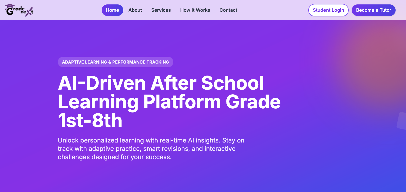 Developed an AI-driven after-school learning platform with adaptive learning, performance tracking, coding classes, and personalized 1:1 tutor support system.