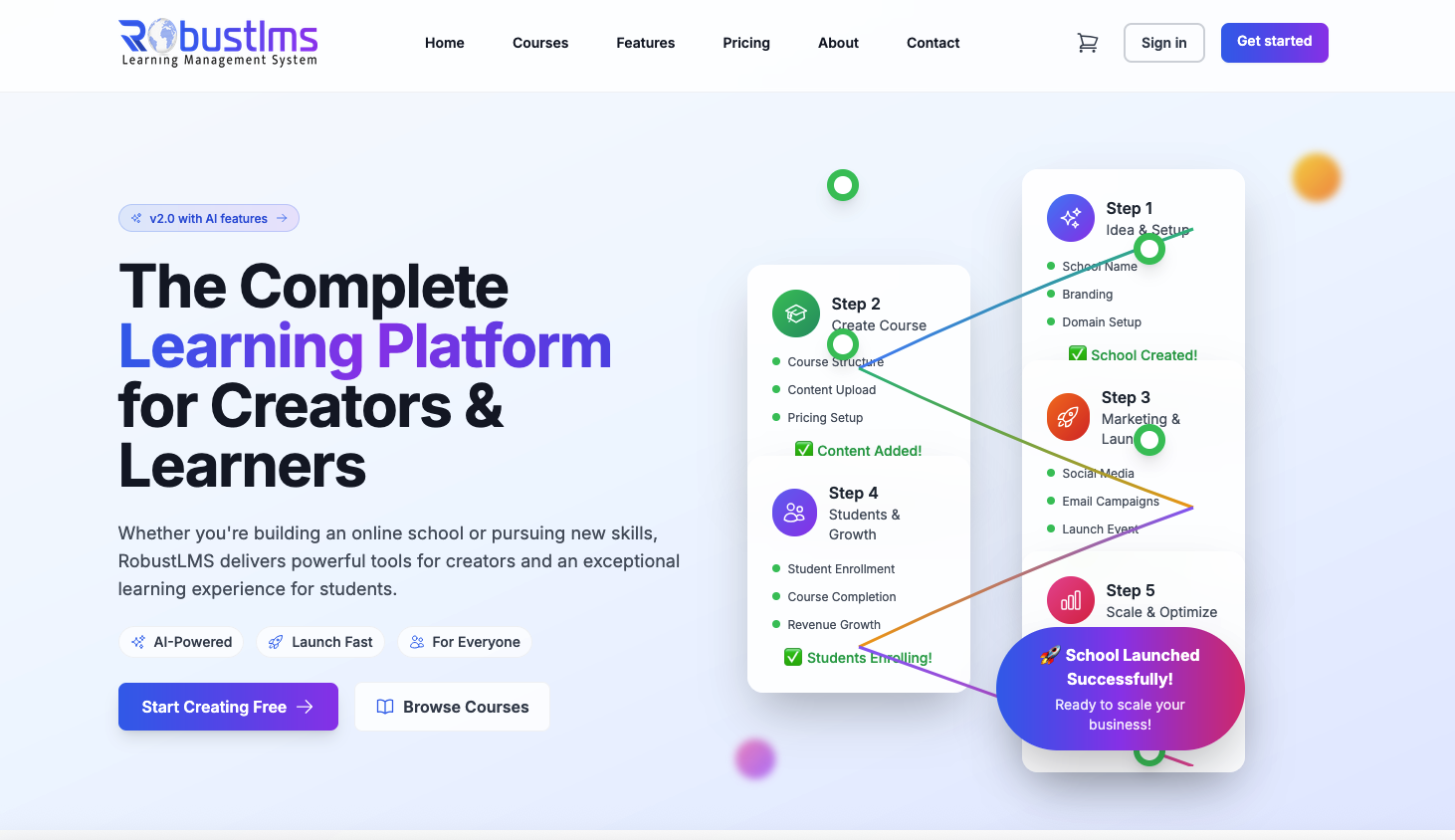 Developed a comprehensive learning management system with AI-powered course creation, advanced analytics, multi-device learning, and enterprise-grade security.